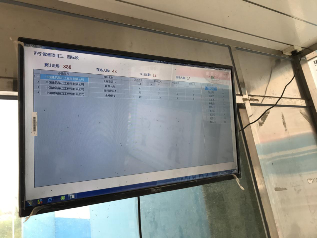 9月5日,苏宁云著施工现场电子显示屏显示,在场人数为43人,出勤人数19人。