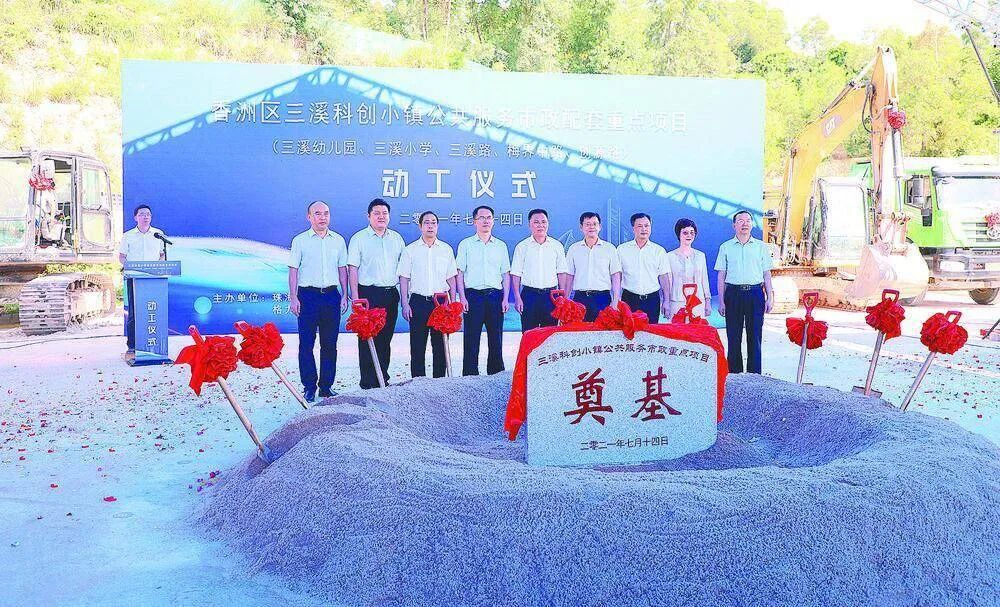 7月14日,三溪科创小镇举办了公共服务市政重点项目动工仪式,三溪幼儿园、三溪小学、三溪路、梅界路和创源路等5个重点项目一起动工,标志着三溪科创小镇进入了新的阶段。