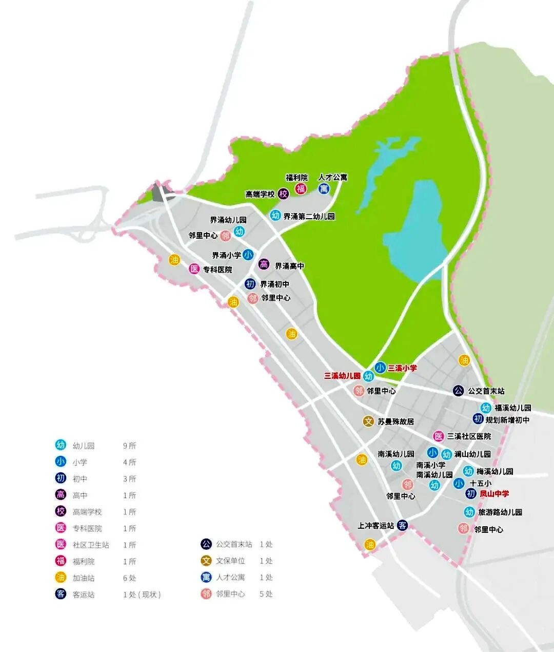至于邻里中心,拟选址三溪路南侧、古元路东侧。