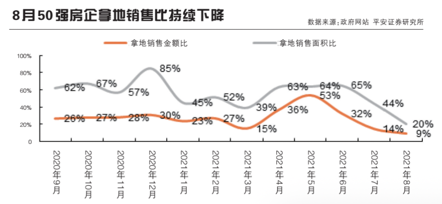 在资金趋紧背景下,房企投资及拿地意愿明显下降,8 月地产投资、开工及销售全面回落,同时在第二批土拍拿地毛利率改善背景下,流拍率(含中止)不降反升,房企拿地意愿低于预期。