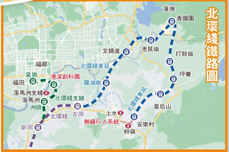 从率先提出建立深港口岸经济带罗湖先行区,到颁布实施《深港口岸经济带罗湖先行区支持港澳专业人才创业就业发展及配套服务实施(试行)方案》、与香港中文大学商学院共同签署项目合作备忘录、通过政企合作大力推动深港青年交流、对多领域产业/机构给予落户奖励/资金支持等,罗湖用实际行动不断推进深港联系。截至目前,仅口岸经济带便已聚集上万家香港企业,在消费、教育、医疗、创业等领域均呈现双城互补模式。“硬联通”方面,则以重大项目为抓手,做强湾区枢纽能级,全力打造融通深港、连通世界的“双循环”重要链接地。值得注意的是,最新的“北部都会区发展策略”中便提到,将北环线由古洞站向东伸延,接驳罗湖、文锦渡及香园围一带;并讨论将东铁线延伸到深圳罗湖,并在深圳一方设立“一地两检”口岸,在现有的罗湖站和上水站之间增设一个非过境铁路服务的新铁路站,以释放罗湖/文锦渡以及上水北一带的发展潜力。