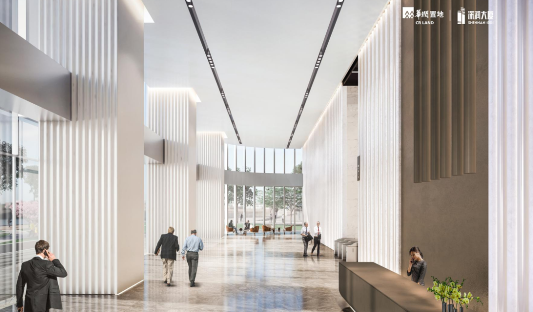 从项目出发,沿深南大道,近距离范围内已吸引了汇丰银行、星展银行、上投摩根等一大批世界500强总部企业集聚,享受多元醇熟的商务环境。此外,深润大厦紧挨地铁黄贝岭站,该站点为三线交会,串联地铁2、5、8号线,可便捷联通全市各区,其中5号线西延线直接连接蔡屋围、大剧院;项目直线5公里范围内则可抵达深圳站、多轨交会的罗湖北站(在建)等,快连外域。作为83载老牌央企,华润拥有绝对的综合实力赋予项目本身足够亮点。深润大厦总建面约11.2万㎡,260米的地标建筑高度跻身深圳“天际地标群”,赋予项目封面价值。设计方面,由世界顶级建筑师事务所之一的英国PLP倾力打造,伦敦金融城第一高楼便出自该事务所之手。整个建筑以“引力场”设计为主概念,于深南大道拔地而起,散发强大号召力量。当眼光转回室内,迎面而来便是约11米层高,融合“光辉未来”设计理念,以充满能量的线性符号和天花模块群设计打造的核心大堂气派形象;