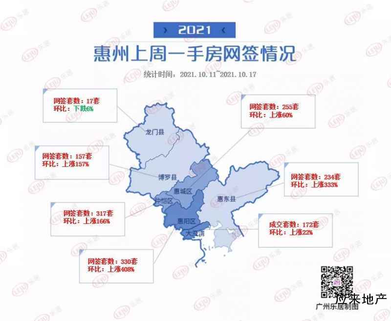 供应方面,惠州上周共5项目新增住宅面积10.2万㎡,惠东县住宅供应占全市主导地位。
