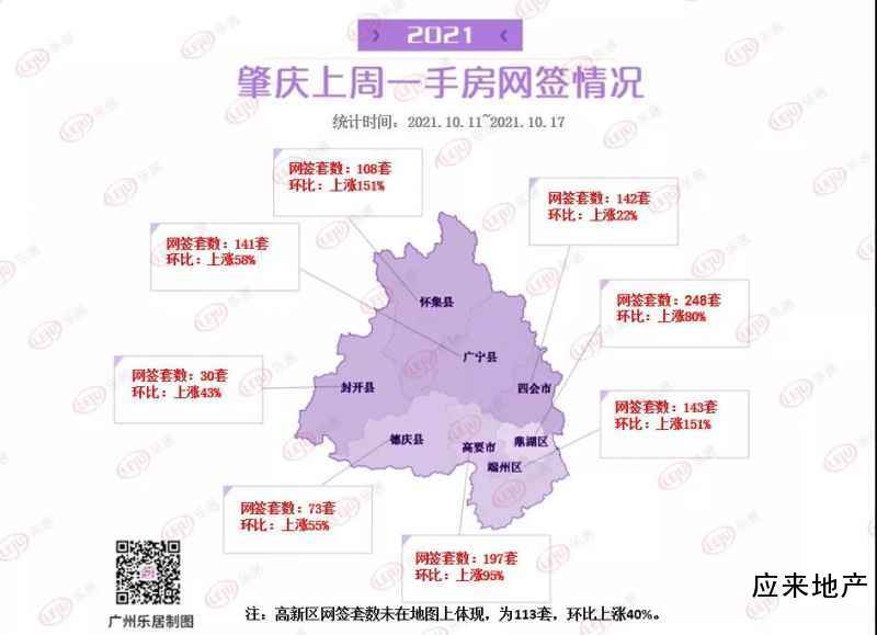 从各区成交来看,肇庆全市成交回暖。其中鼎湖稳住周冠,成交248套,环比大涨80%;高要紧追其后,共网签197套,环比涨95%;端州冲入前三,成交143套,环涨151%。