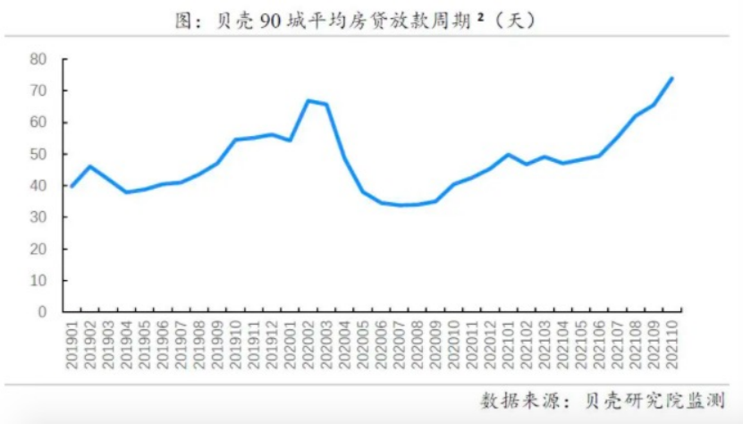 从整体数据看,10月90城房贷平均放款周期为74天,较上月有所延长。贝壳研究院认为,这主要是由于放款动作与利率调整存在一定时差,10月银行发放的贷款多为前几个月期签约的单子。不难看出,在房地产强力调控压力下,房贷放款周期持续延长。自去年6月起,放款周期就保持震荡上涨。放款周期长,加之多地出台二手房参考价制度,一线城市房地产交易热度下降,这从二手房成交数据中可见一斑。数据显示,9月,北京二手住宅成交量为12575套,环比下降21.12%;上海二手房成交约1.2万套,环比下降33%;深圳成交二手住宅1765套,环比下降13.6%;广州二手房成交量约为6198套,环比下降27.4%。国家统计局数据显示,9月份,一线城市新建商品住宅销售价格环比由上月上涨0.3%转为持平,二手住宅销售价格环比由上涨0.2%转为下降0.4%。同时,二三线城市商品房价格也呈下跌趋势。分析人士认为,当前,在严格的调控政策下,楼市呈现“量价齐跌”局面,“笋盘”将逐步释放。同时,政策调控的目的始终是抑制“炒房”,而非打压刚需,热点城市的“刚需一族”或迎来较优的购房窗口期。10月21日,银保监会统计信息与风险监测部负责人刘忠瑞在国新办举行的新闻发布会上表示,保障刚需群体信贷需求,在贷款首付比例和利率方面对首套房购房者予以支持。他表示,目前,银行个人住房贷款中有90%以上都是首套房贷款。对于后市,贝壳研究院指出,9月底以来央行多次释放积极信号,预计四季度住房信贷的投放将回归“平稳有序”,对首套置业客群、卖一买一的改善客群予以保障和支持。一方面房贷利率下调的城市范围将扩大,另一方面放款周期将有所缩短。信贷环境的边际改善有利于市场预期改善,带动刚需群体入市。应来地产http://www.519000.com.cn/