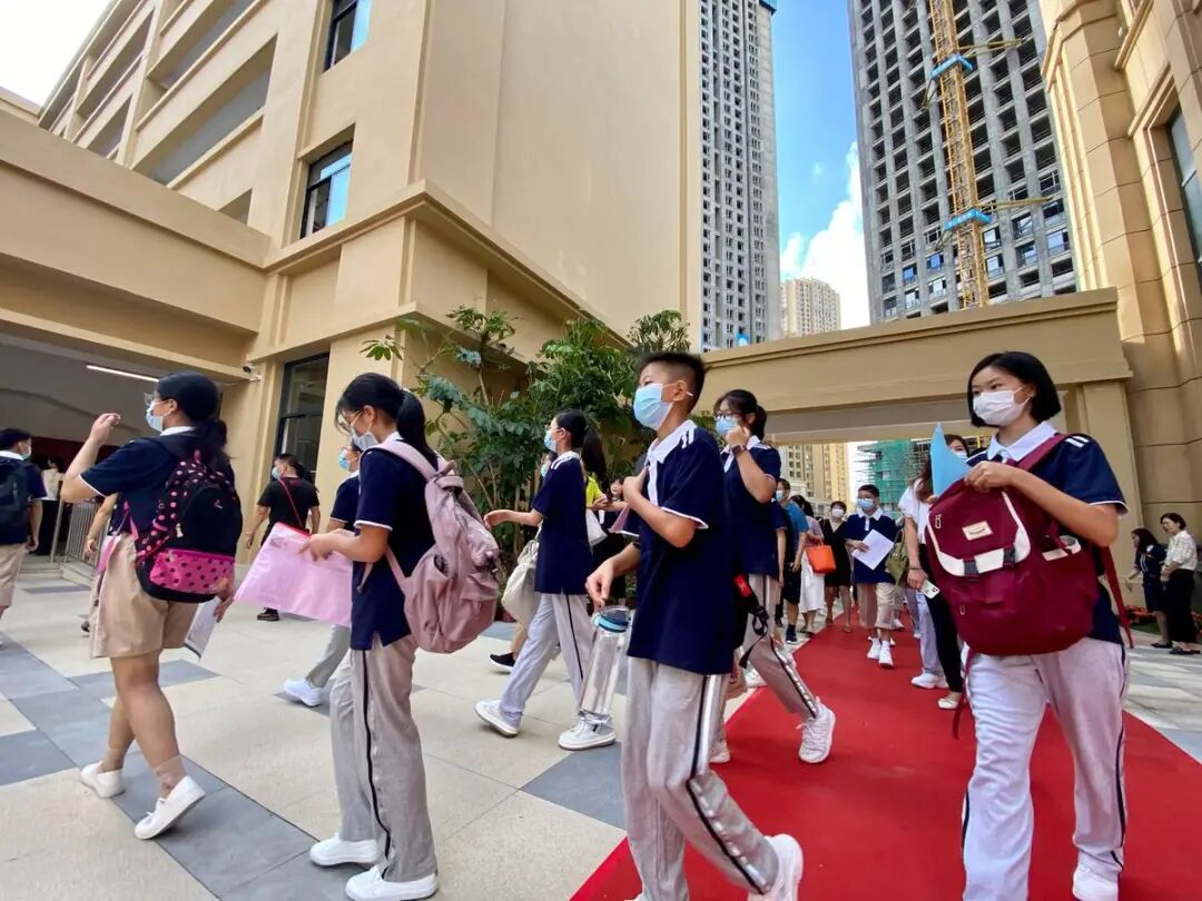 当天,该校还开展了阳光分班工作,采取电脑随机抽签的方式,由家长和学生共同参与。为了让学生更有参与感,由学生在教室里自行抽签,家长们在主会场等待并观看抽签结果。分班结束后,学生将前往各个班级进行报到。