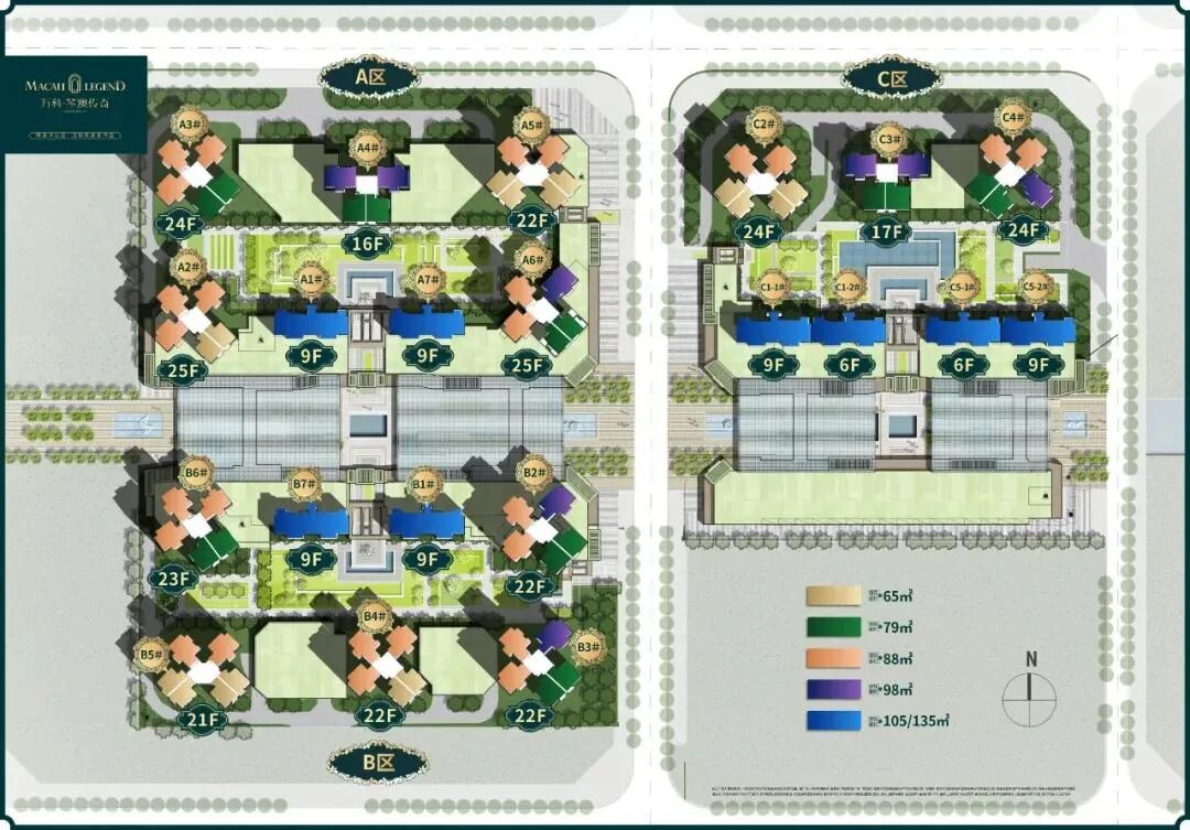 万科·琴澳传奇,规划了建面约65-98m²高层及105-135㎡洋房、顶复产品,全部为装修交付。